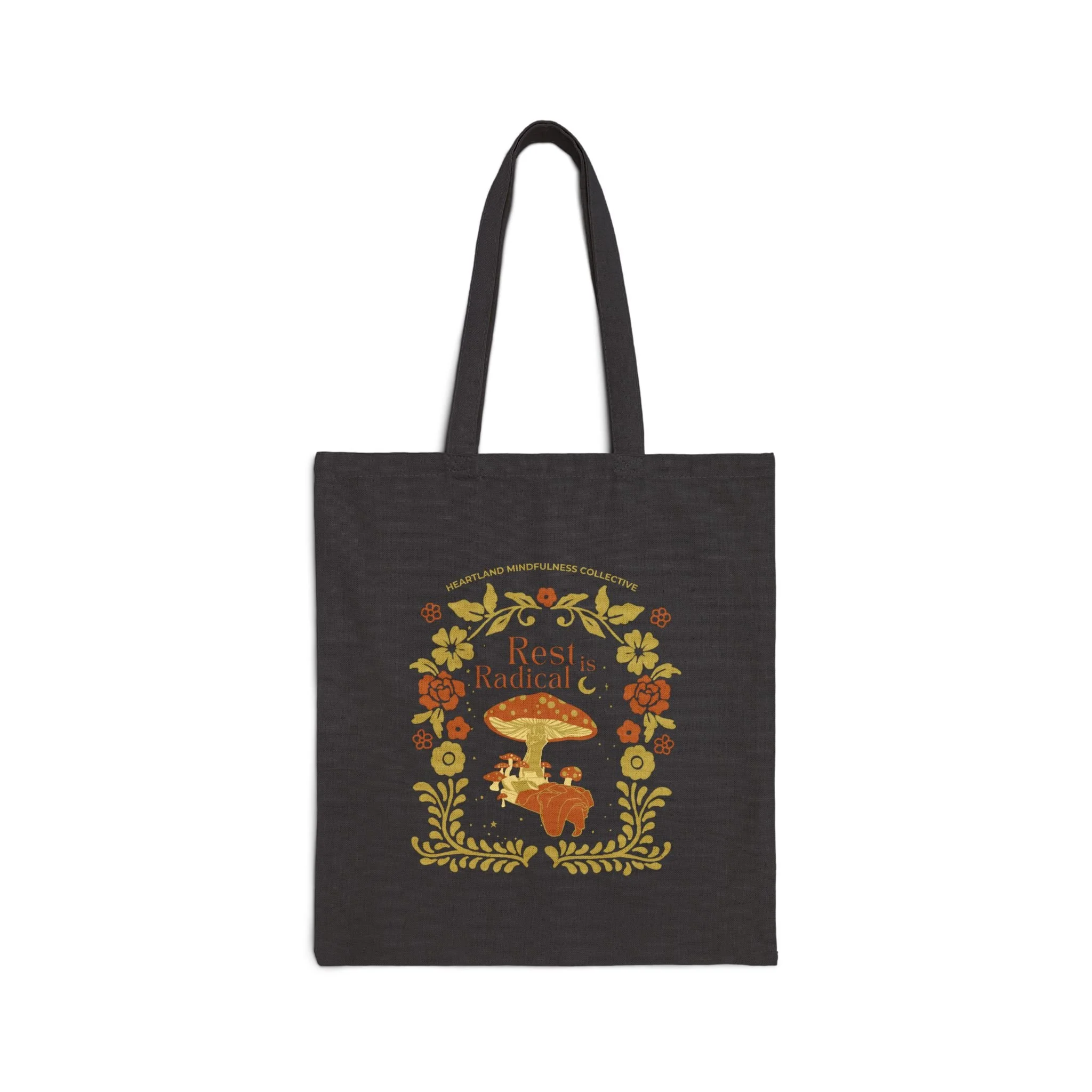 Tote around your personal reminder to stop, and Rest Radically! This heavyweight cotton tote bag is perfect for slow mornings at the library checking out banned books, afternoons undermining capitalism by napping under a shade tree, or evening trips to Heartland Mindfulness Collective’s donation based classes at Cityoga!